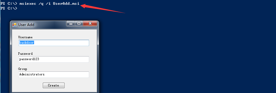 PS C:\> Write-UserAddMSI #管理员权限运行