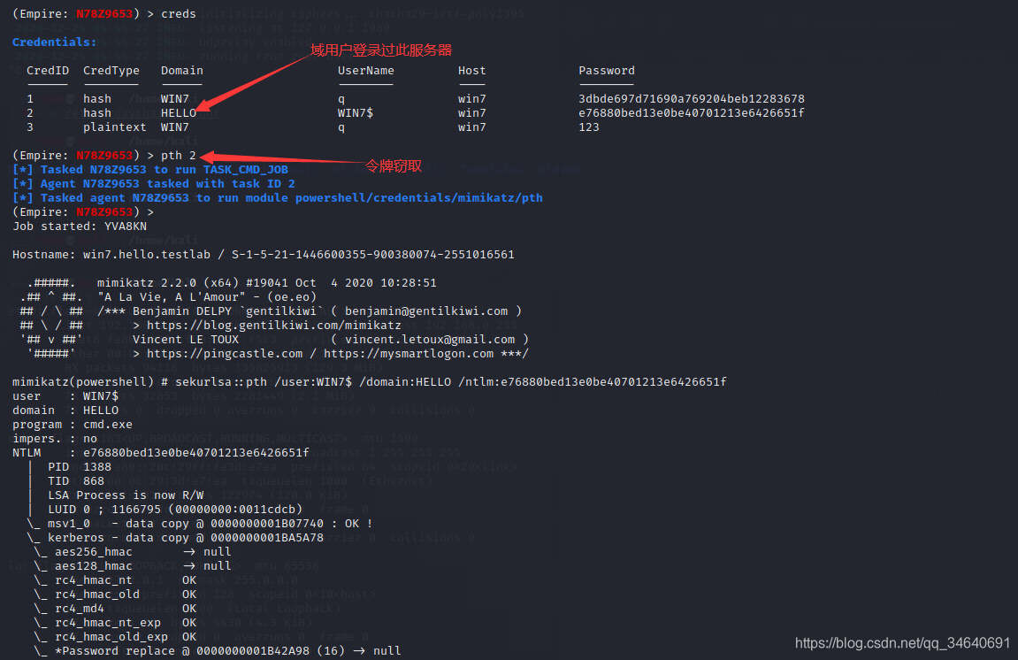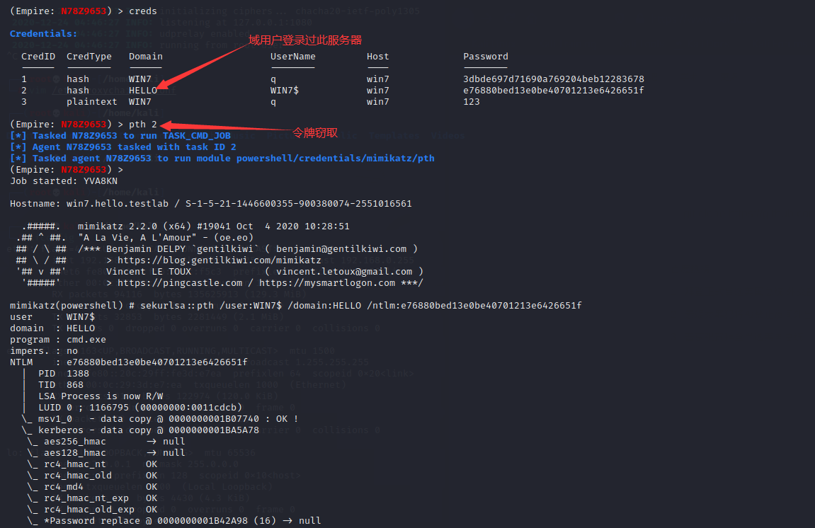 同样在meterpreter中可以使用incognito来模拟域管理员,然后通过迭代系统中所有可用的身份验证令牌来太添加域管理员