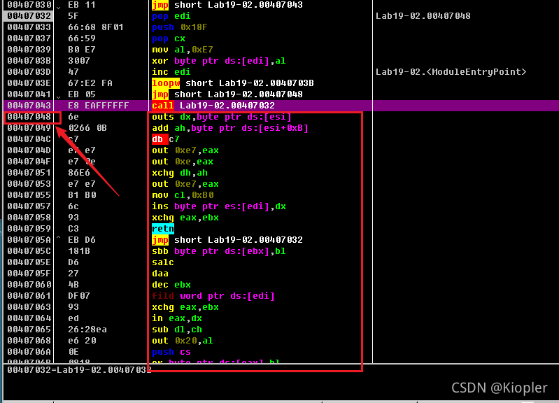 在21e处的retn则会来到224处,在224开始解码,这里就是开始解码的地方。