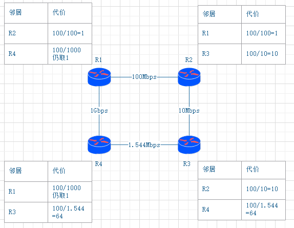 例如思科路由器中OSPF计算代价的方法是用100Mbps链路带宽。 - 计算结果小于1的值仍然记为1