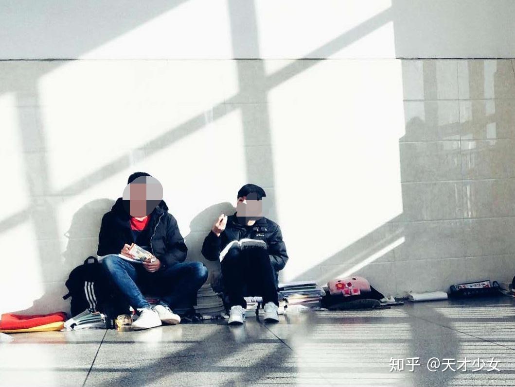 这是我19年一个人在学校准备考研的时候,每天早上起来趁图书馆还没开门的时候,就在学校图书馆的过道坐着背英语背专业课背政治,有一天我一个朋友路过,刚好看到我,就帮我拍了这张照片。