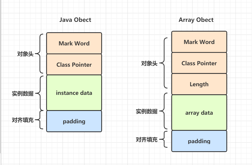 - 类型指针 (Klass Point):用来说明该对象是哪个类的实例。指向 方法区(元空间/永久代)中 Class 类型数据。