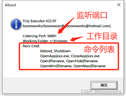 - TinyExec.exe 软件接收UDP消息监听端口: 50001