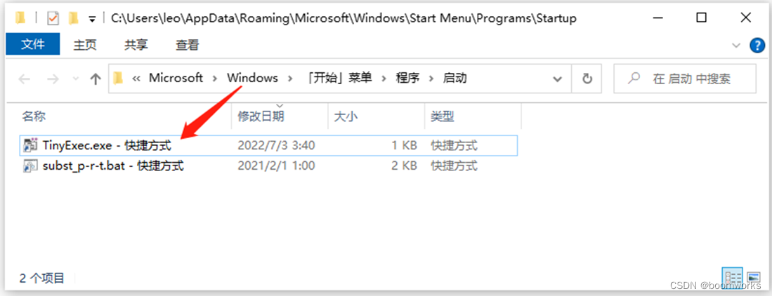 - 将【TinyExec.exe - 快捷方式】复制到上一步打开的Windows启动文件夹(图5-14-5);