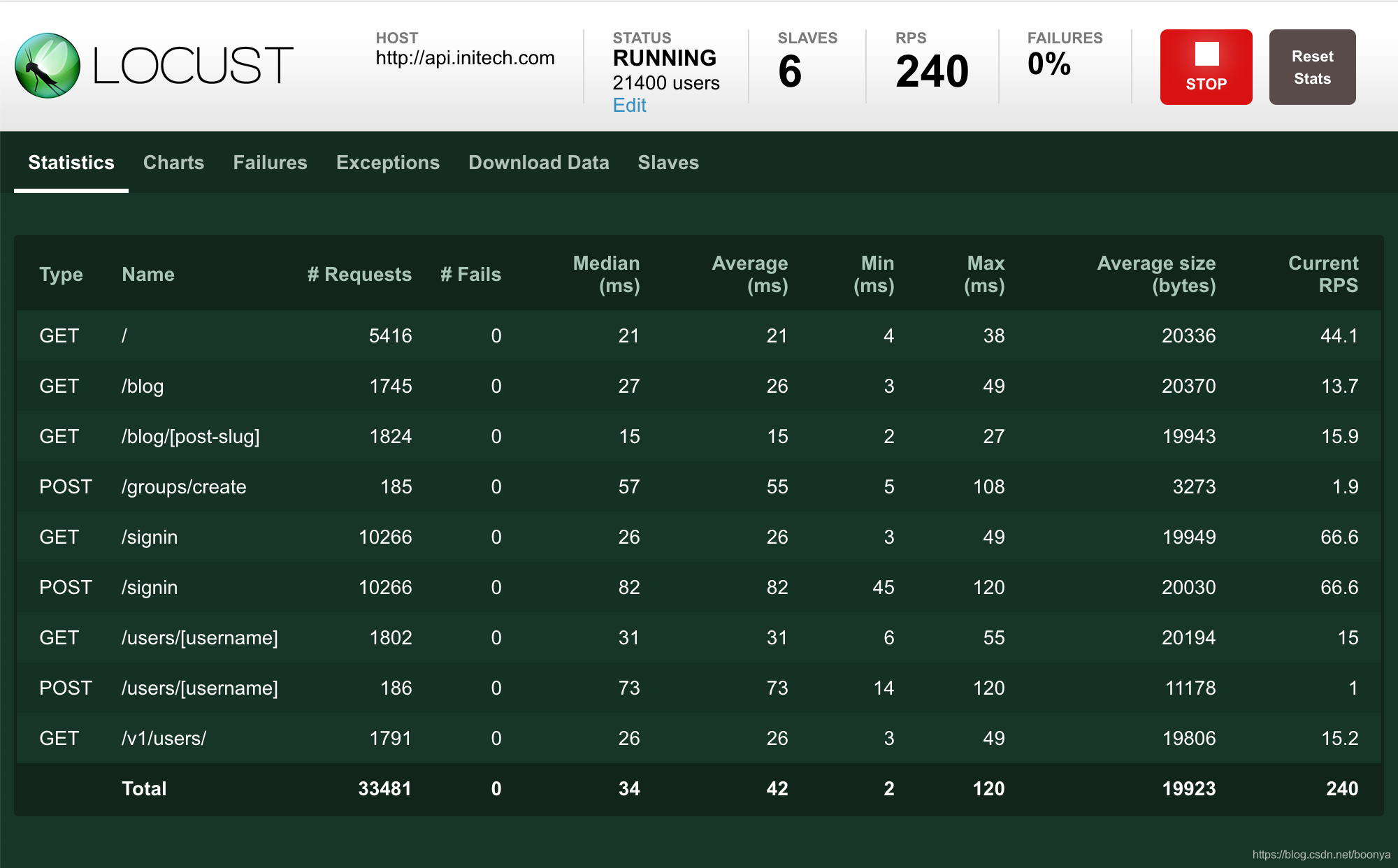 Locust是一个易于使用,可编写脚本且可扩展的性能测试工具。使用Python代码定义用户行为,并让数百万同时用户拥护您的系统。
