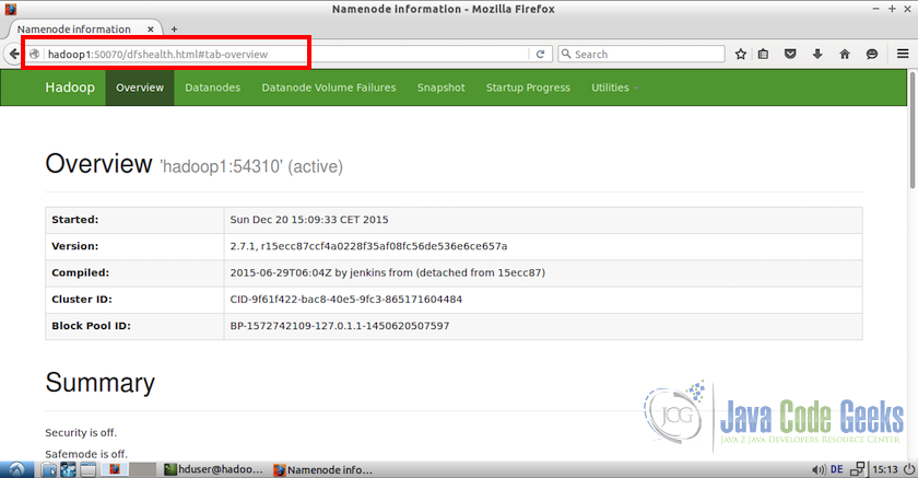 我们还可以从任何从节点访问Web界面,但对于那些我们必须使用主主机名或IP地址。 例如,从hadoop2(从节点),我们可以使用地址http:// hadoop1:50070访问Web界面。