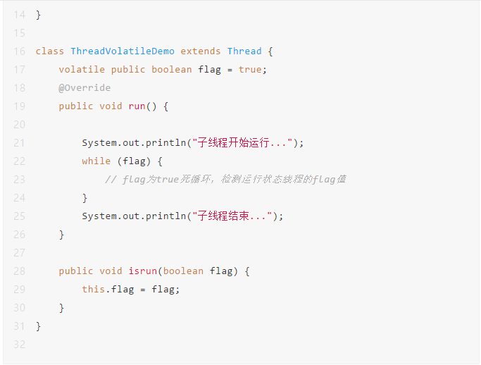Java语言提供了一种稍弱的同步机制,即volatile变量,用来确保将变量的更新操作通知到其他线程。当把变量声明为volatile类型后,编译器与运行时都会注意到这个变量是共享的,因此不会将该变量上的操作与其他内存操作一起重排序。volatile变量不会被缓存在寄存器或者对其他处理器不可见的地方,因此在读取volatile类型的变量时总会返回最新写入的值。