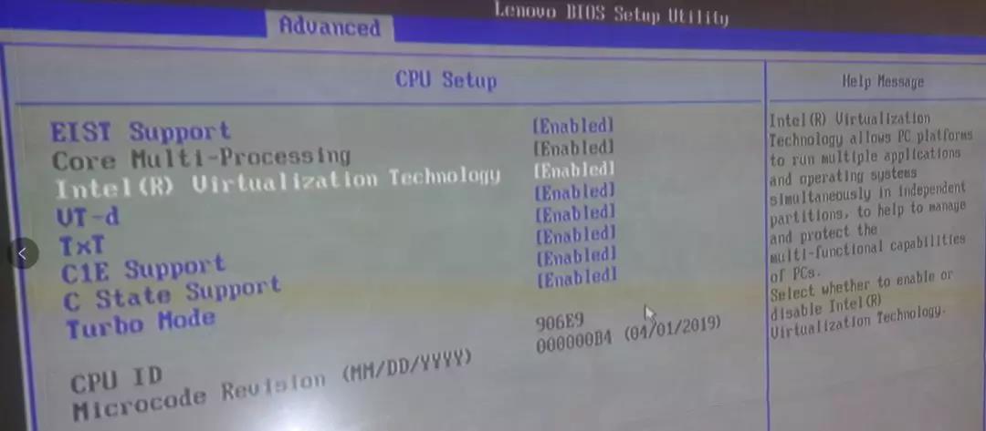 这里是ThinkServer TS250,开机等待按F1进入BIOS Setup Utility。进入到Advanced -> CPU Setup。把Intel(R) Virtualization Technology 、VT-d、TxT等三项设置成[Enabled],退出时记得保存并重启。,