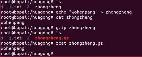 zcat 查看压缩文件的内容 例:查看压缩文件zhongzheng的内容