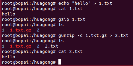 -c 使用这种方式,原压缩文件不会被删除。例:解压1.txt.gz 但保留1.txt.gz