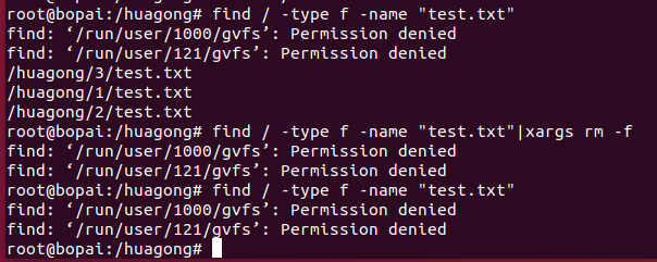 例:在根目录下查找test.txt文件并删除