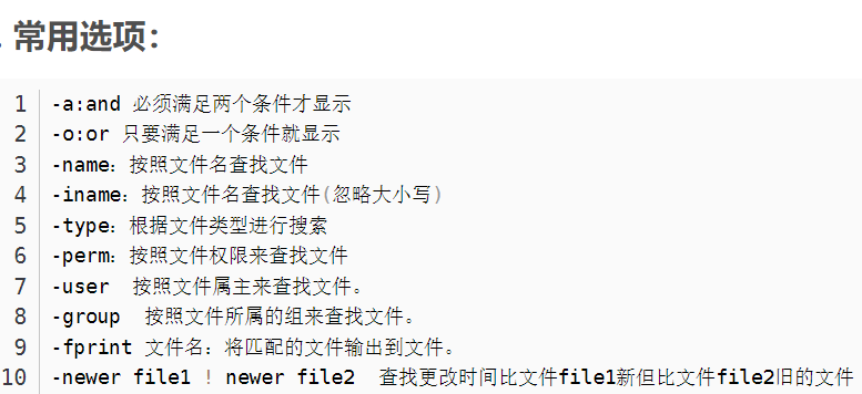 格式:find 目录 选项 动作
