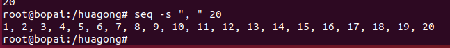 格式:seq -s " (分隔符) " 序数