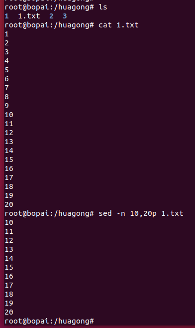 例:输出1.txt里10-20行的内容