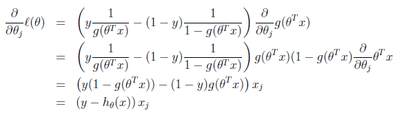 为了使似然性最大化,类似于线性回归使用梯度下降的方法,求对数似然性对的偏导,即: