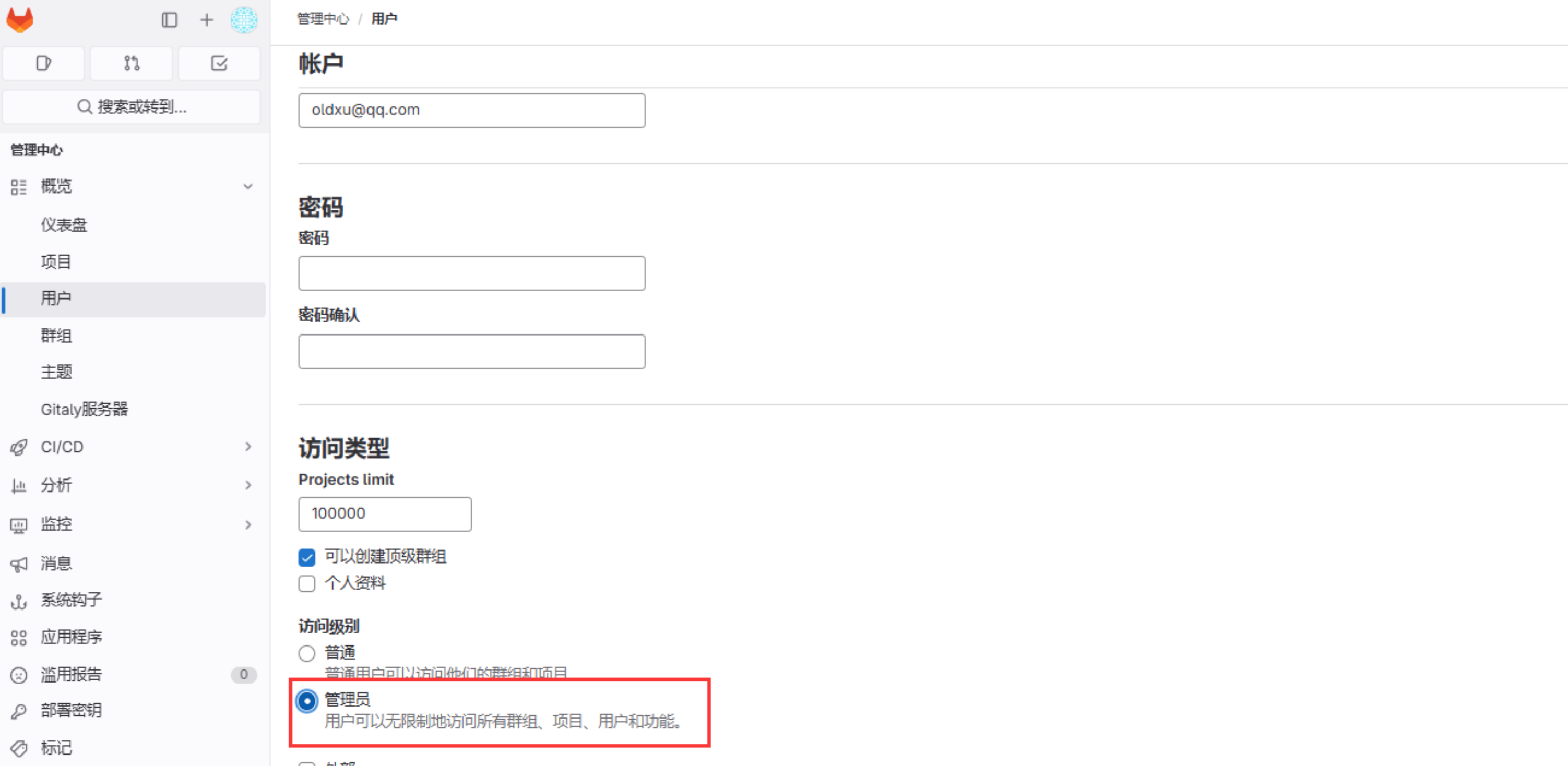 - 示例:如果 zhangsan 和 lisi 需要登录 GitLab,那么将他们加⼊到gitlab-group 组中。