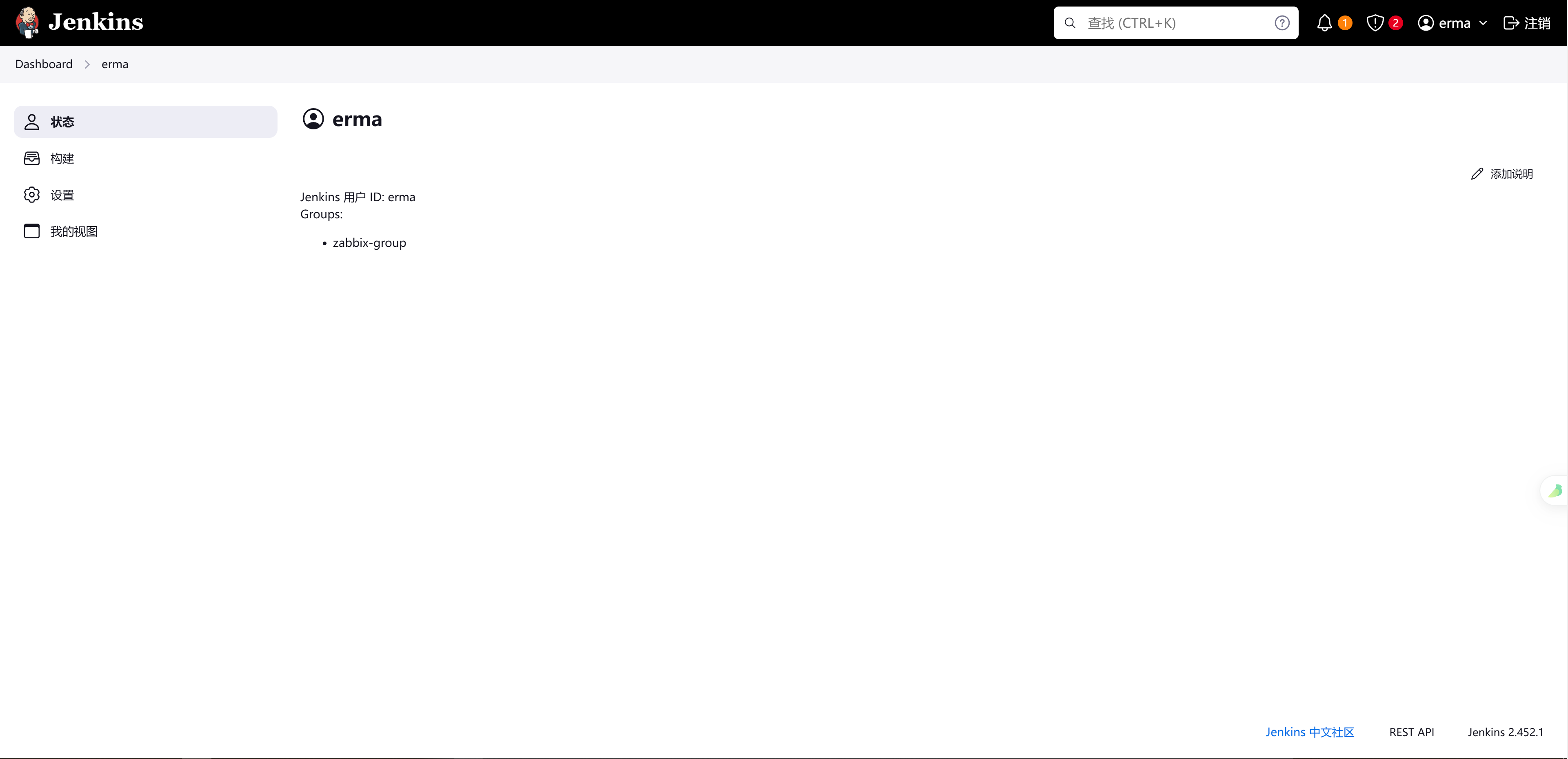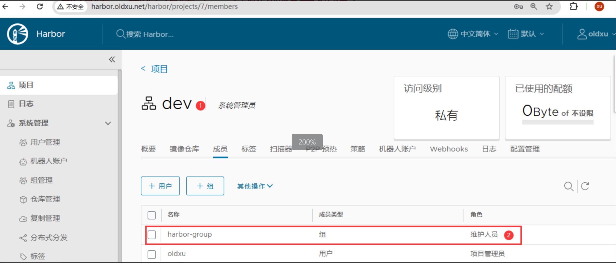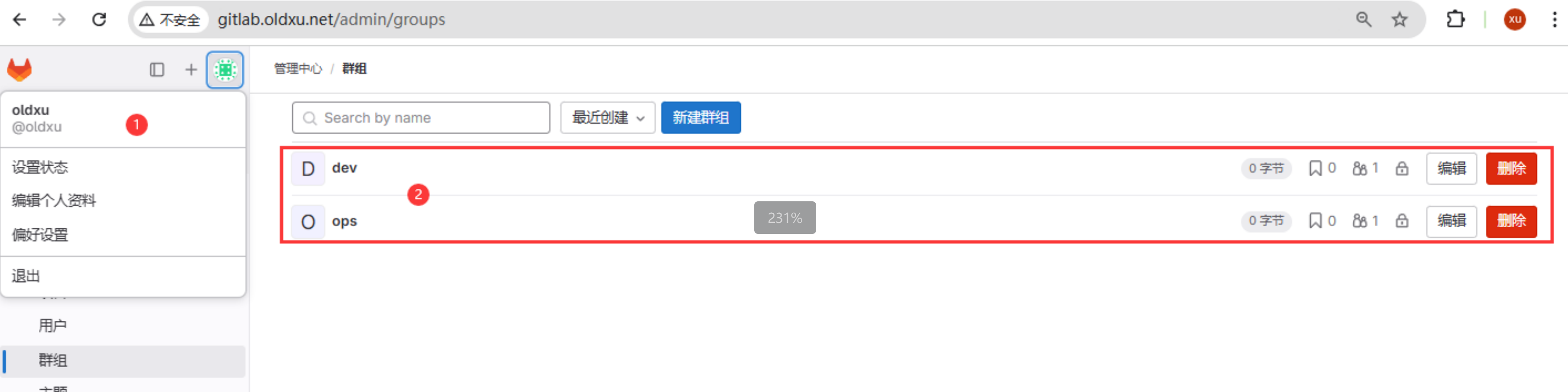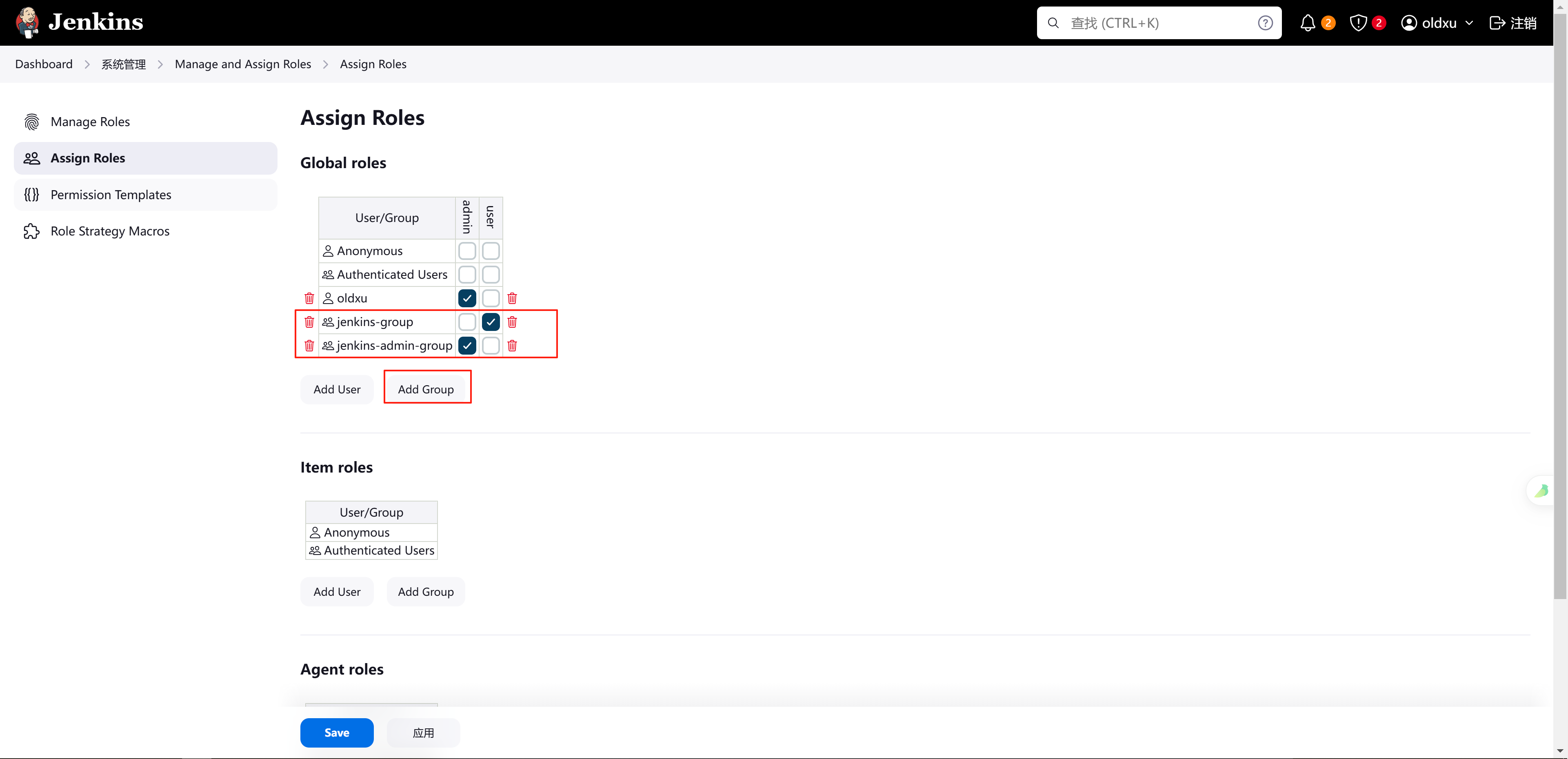 2、在 app-groups 下在创建⼀个 zabbix-admin-group 的组,⽤来存储管理员⽤户,并将 oldxu ⽤户加⼊该组中;