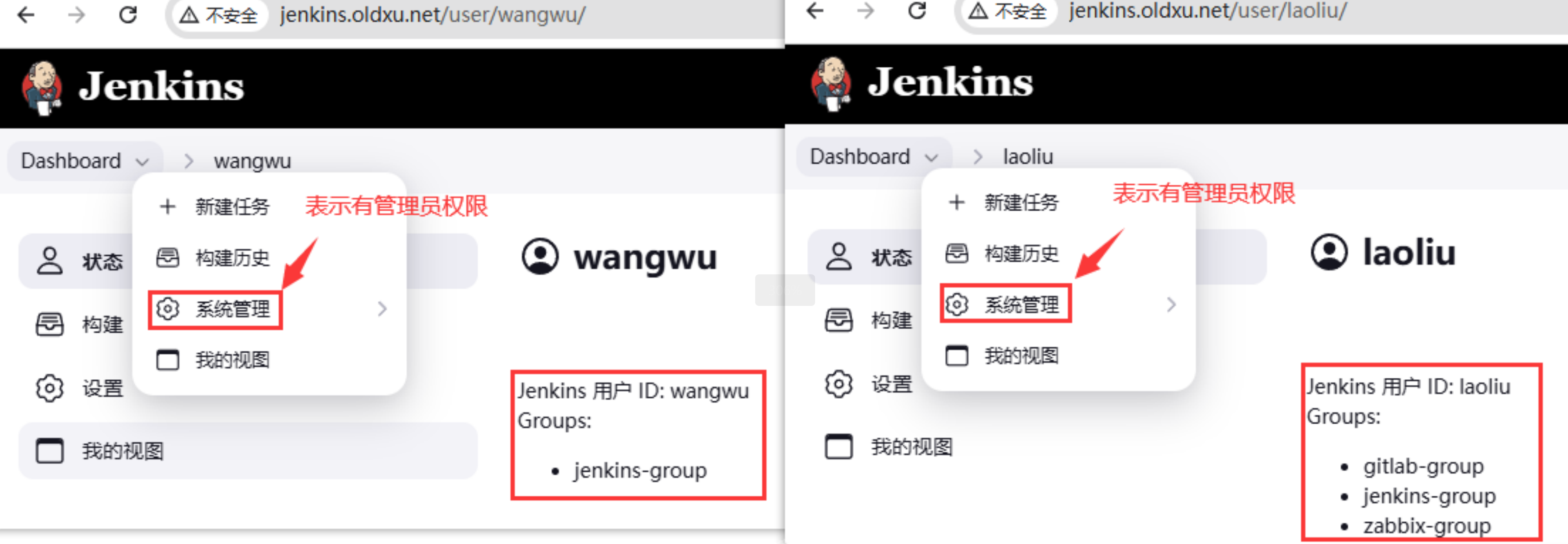 通过这种⽅式,每个⽤户的访问权限可以根据其“所属的组”来动态控制。如果 zhangsan 属于 gitlab-group ,他就可以访问 GitLab;如果他同时属于 jenkins-group ,他也可以访问 Jenkins。这种基于组的动态权限控制,⼤⼤的简化了⽤户的管理流程,并且还实现了集中管理和精确授权的双重⽬标。