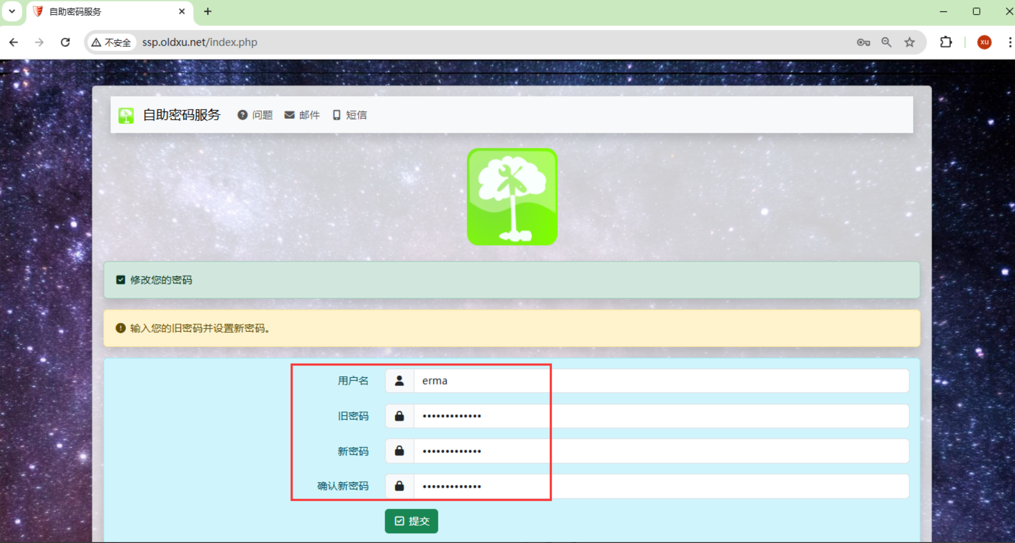 $mail_from_name = "Self-Service-Password⾃助修改密码服务";