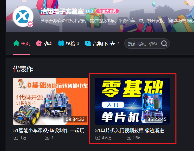 官方B站视频链接:51单片机入门视频教程 循迹渐进 程序纯手敲 代码开源 初学入门推荐_清翔电子实验室