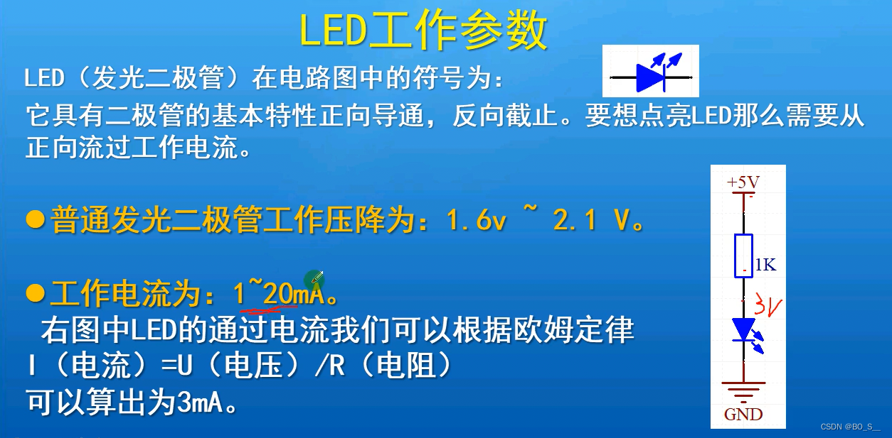 需要注意的是,不同颜色的LED工作电压和电流都不一样,需要根据器件手册进行具体配置计算,如果进行粗略计算也可,但是如果有多个LED的话,LED的亮度会不均匀