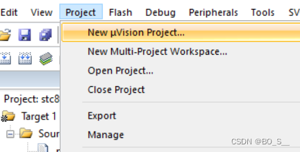 2.打开keil,我用的是keil 5,在Project选项卡选择New μVission Project...