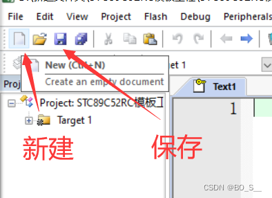6.点击左上角的新建,再点击保存,保存名称为main.c
