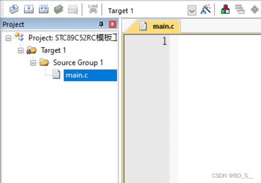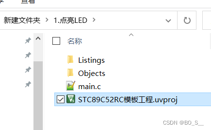 进入“1.点亮LED”文件夹,双击.uvproj文件(也就是带keil图标的那个文件)