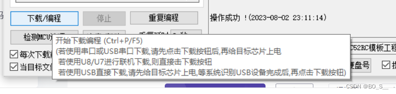 这样就可以了,再点击stc-isp左下角的下载/编程按键就可以下载到单片机中运行。由于我的开发板内置自动下载电路,所以我点击下载后就可以直接下载运行,有些开发板没有自动下载电路,需要单片机冷启动,也就是把开发板上的电源开关关闭再打开才能被下载软件检测到。