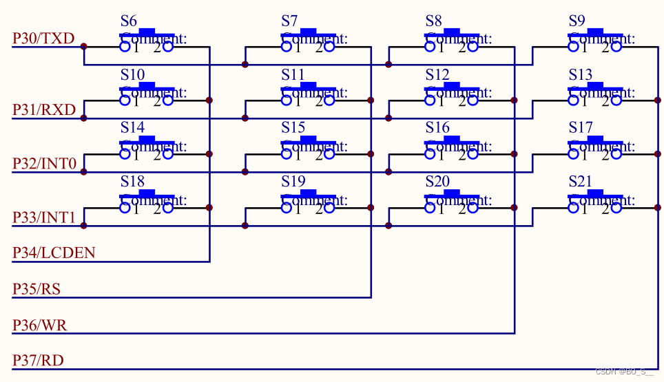 矩阵按键有4行4列,可以通过列扫描和行扫描来确定哪个键被按下。