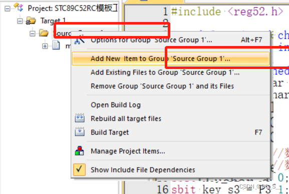 在Source Group 1上右键,选择Add New Itemto Group'Source Group 1'..,