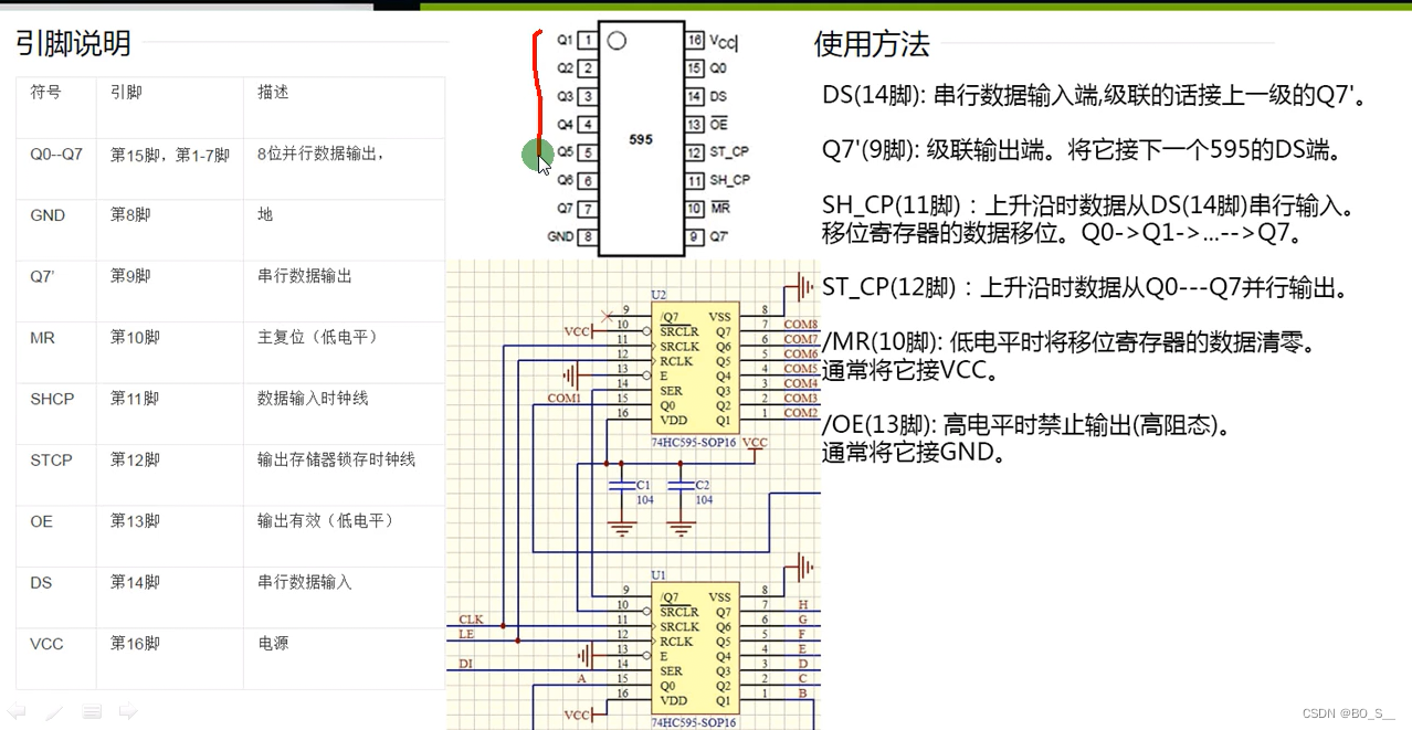 9脚级联输出端,接下一个74HC595的14脚(也就是下一个74HC595的数据输入脚)
