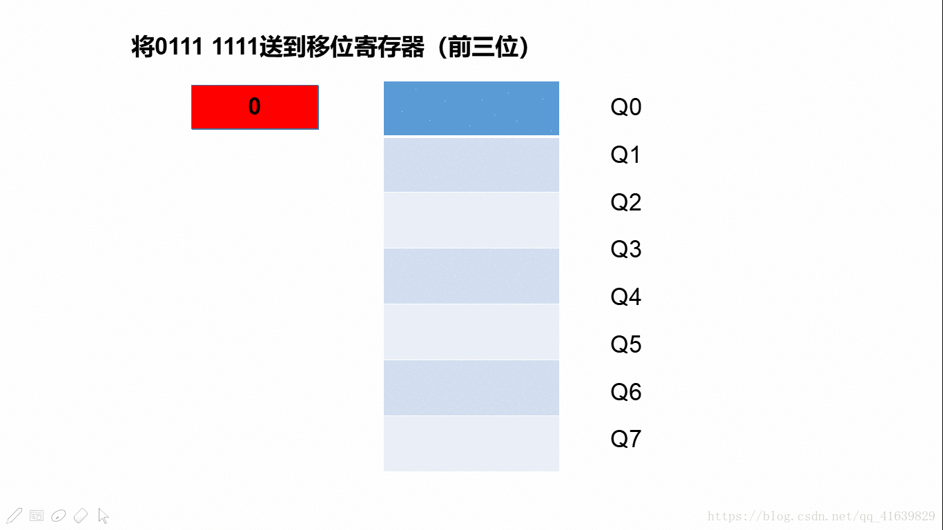 一位,在下一个上升沿到来时移位寄存器中的所有位都会向左移一位,