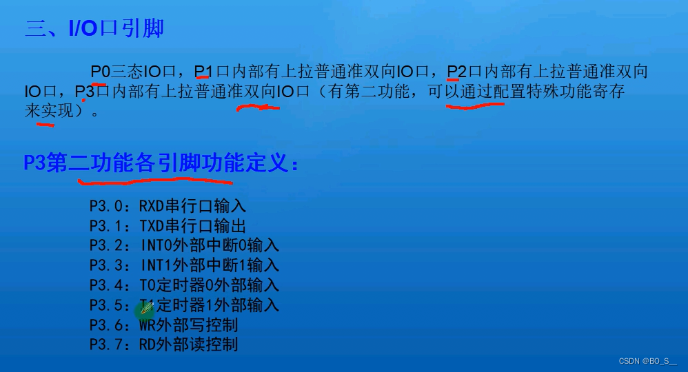 目前只找到这个文章STC89C52的四个 外部中断 基本使用方法说有4个外部中断,但是外部中断2和3在P4.3和P4.2上,我芯片上好像没这两个引脚,就非常奇怪,就先按照视频所讲的写笔记了,以后弄明白了再更正,或者有懂的朋友在评论区指出。