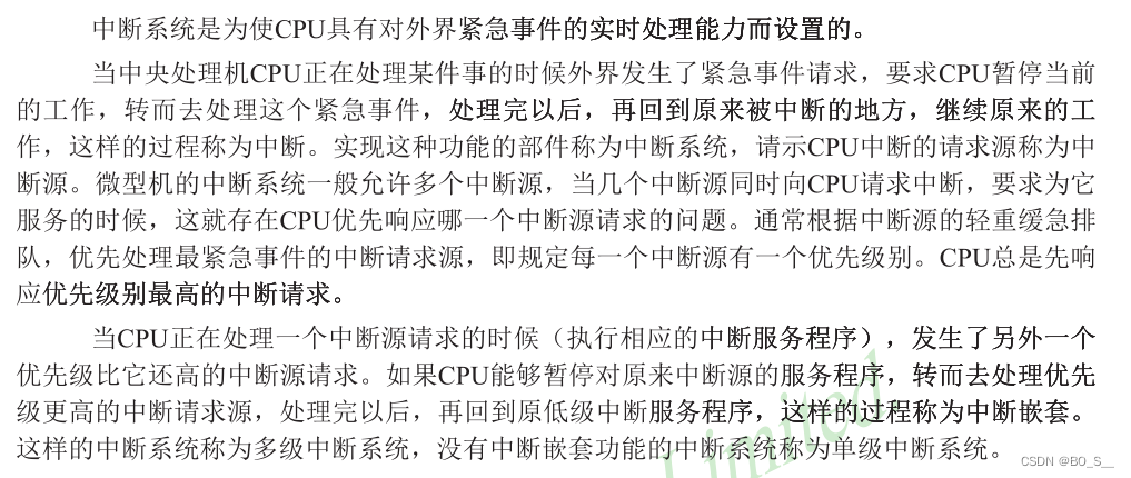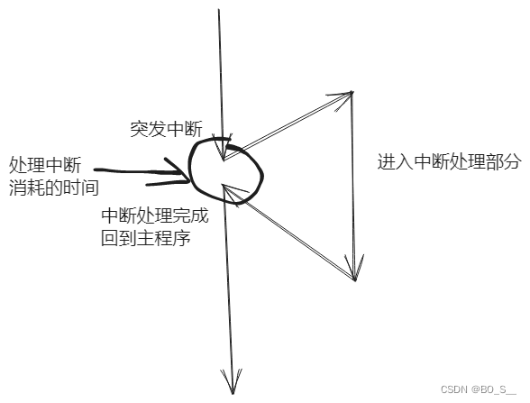 中断就是遇到某种突发情况,单片机去处理突发事件,处理完突发事件之后再回到由原来的地方继续处理原来的内容。