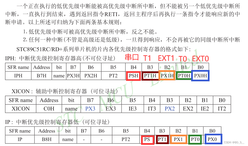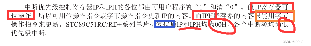 - 注意IPH是不可位寻址的,所以不能写类似 PSH = 1;这样的代码,而是需要给整个IPH寄存器赋值,改变想要改变的位。
