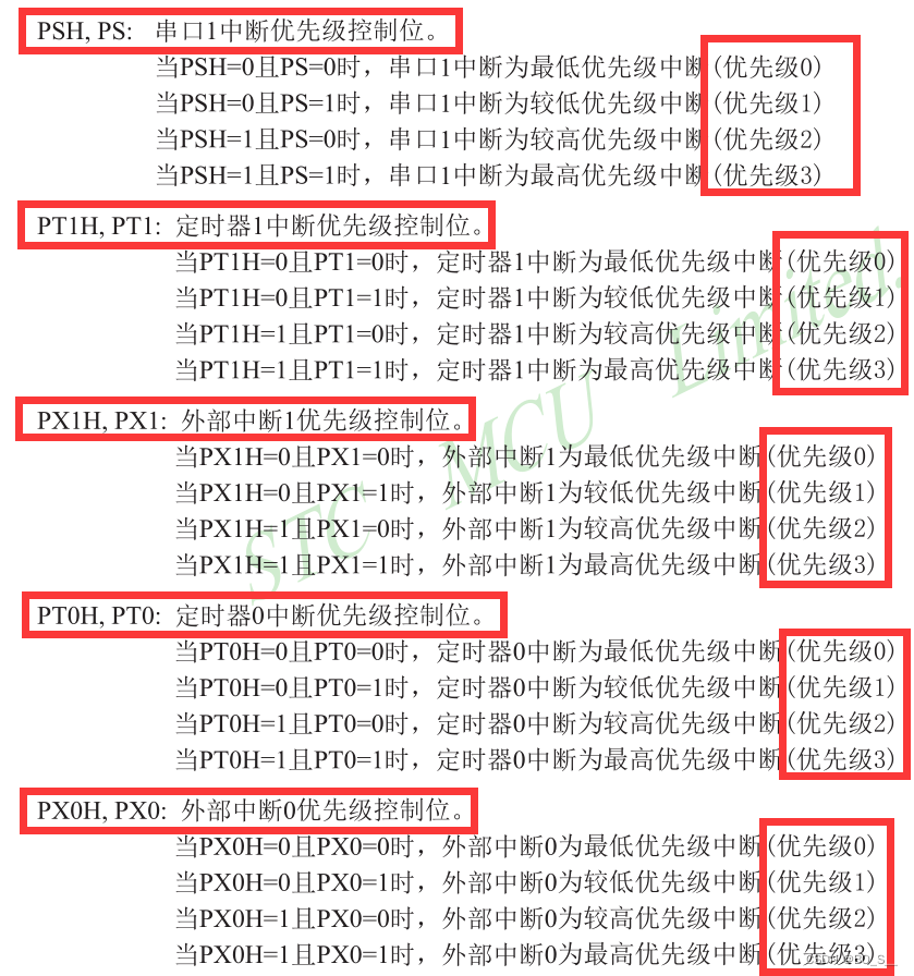 优先级可以配置0,1,2,3共四级优先级,数据手册内容如下