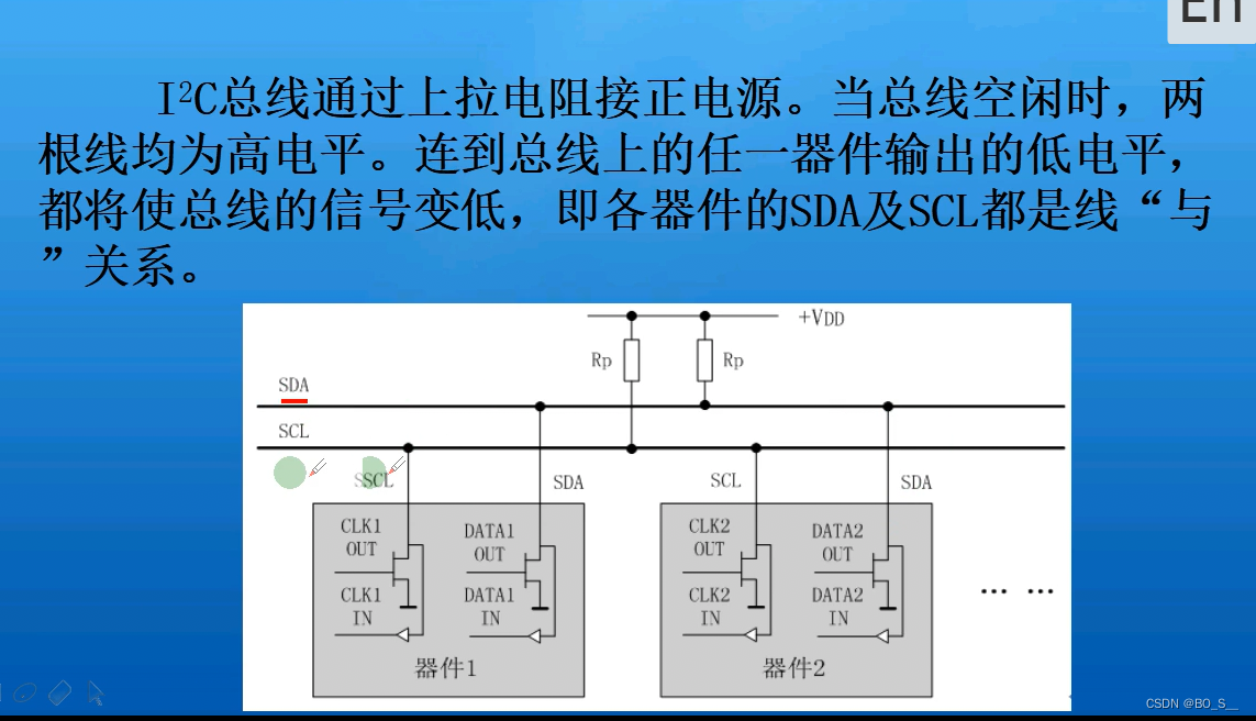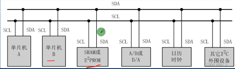 线与:所有器件都是高,SDA才为高,又任何一个器件为低,那么SDA就为低,相当于逻辑与的关系。