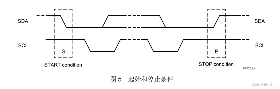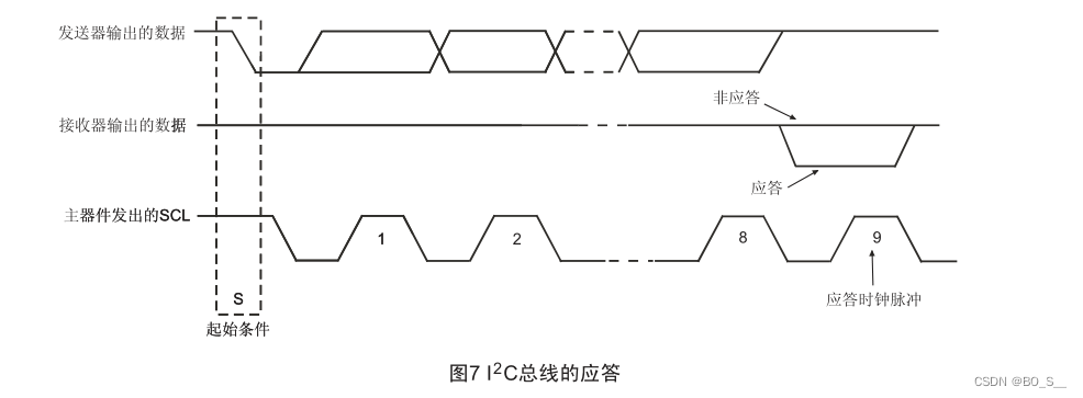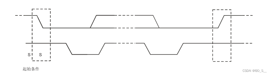 在SCL=1期间,SDA从高电平变成低电平,表示起始信号