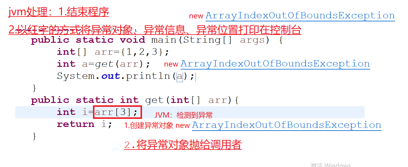 //printStackTrace()以红字的方式打印异常对象、信息、位置