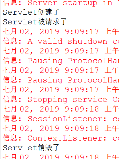 销毁:web应用被卸载(服务器关闭,移除该web应用)