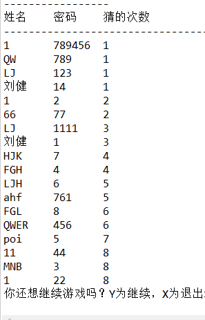 用户输入姓名、密码,然后输入要猜的数字,点击提交,弹窗提示大了,小了,猜对了还有猜的次数,猜对了则出现保存按钮,可以选择保存到数据库,还有时间限制,时间到自动退出程序,有查询排行榜的功能,从数据库查询。
