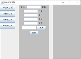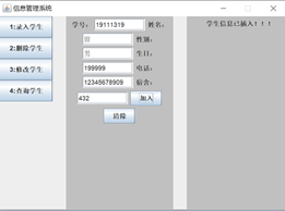 通过了正确的验证,就可以选择学生信息的基本管理,并进行进一步的操作.有录入,删除,修改,查询等学生的基本信息的修改