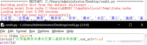 2.jieba.lcut(s,cut_all=True)全模式 所有分词可能都会被列出来