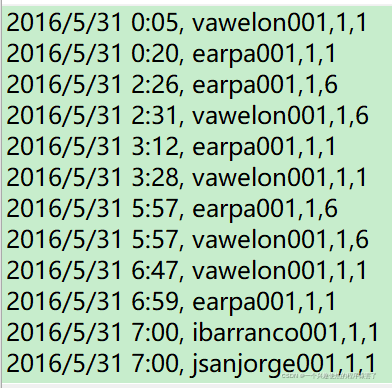 那么在第一列的是传感器获取数据的时间,第二列是传感器的编号,第三列是传感器所在的楼层,第四列是传感器所在位置的区域编号。
