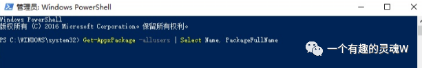 2、输入命令“Get-AppxPackage -allusers | Select Name, PackageFullName”,获取当前系统安装的所有应用。