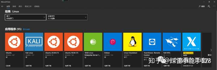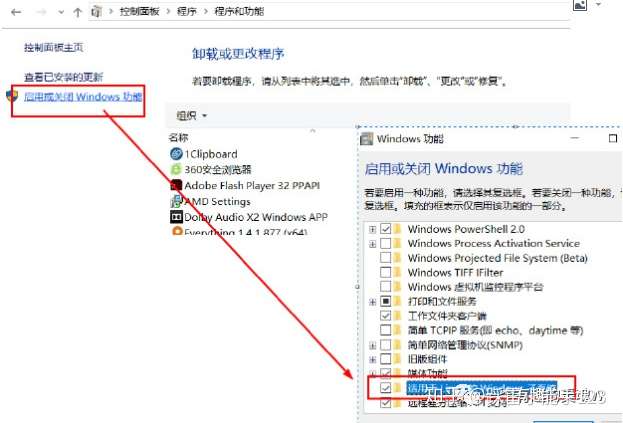 控制面板-程序-程序和功能-启动或关闭Windows功能-勾选✔适用于Liux的Windows子系统