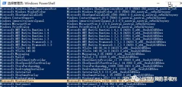 4、输入下列命令进行应用商店的重装(我的windows10版本是1703,版本不同包名称也不同,下列命令看着替换一下自己的包名称就好了。):