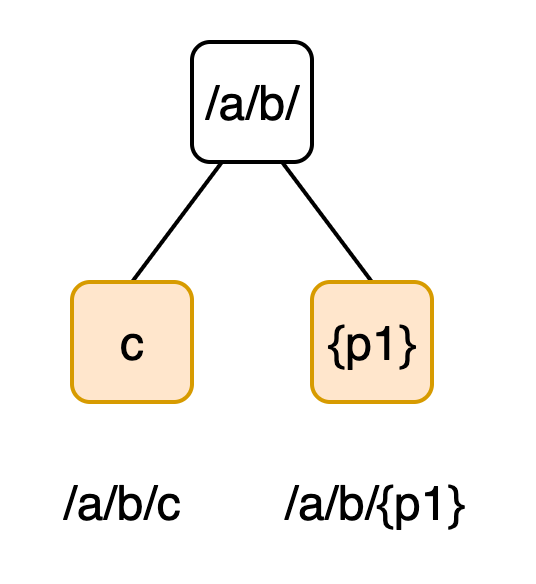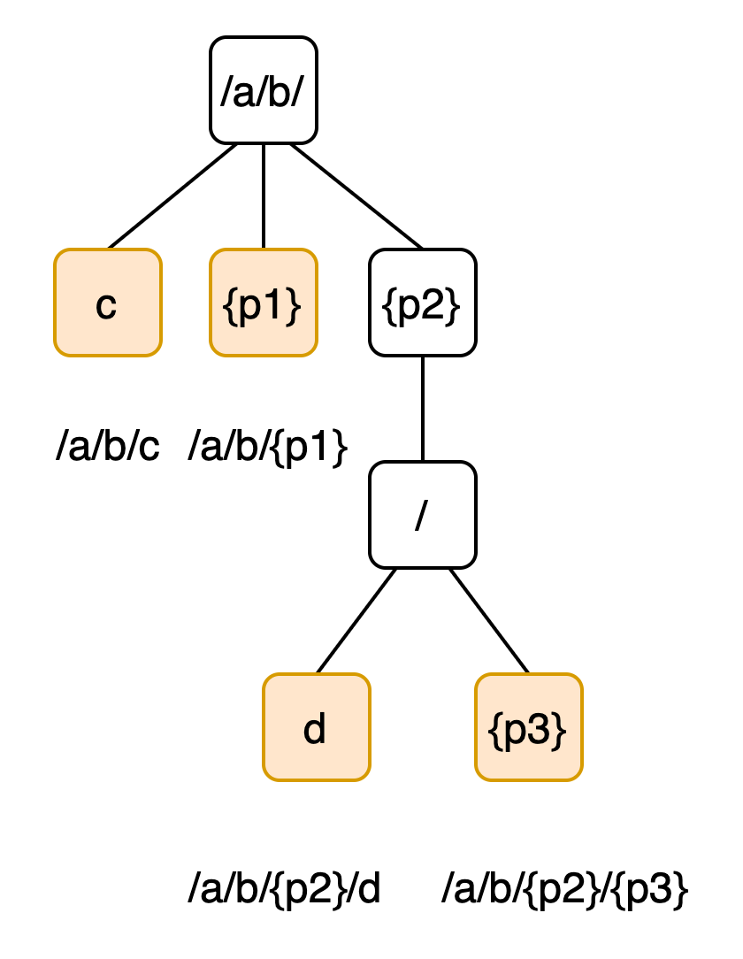 这个树表达了四个API > /a/b/c > /a/b/{p1} > /a/b/{p2}/d > /a/b/{p2}/{p3}