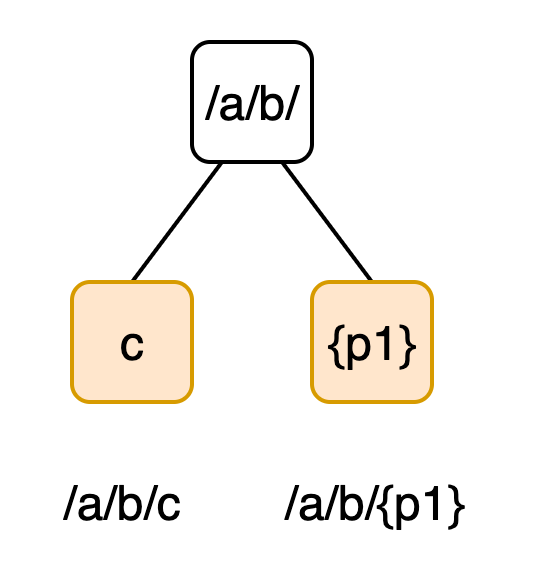 当请求/a/b/c到达时,从规则上来讲,两个API都是能匹配成功的,这种情况我们希望选中第二个API,即当请求匹配多个API时,选择常量部分匹配最多的API。这意味着,除非完整匹配到了全常量定义的API时,匹配可以立即结束,否则只要匹配到的API中带有参数,我们就需要继续进行匹配。